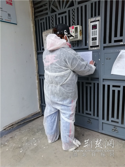 網格員在社區院內張貼《武昌區關于實行居民區封閉式管理的公告》。 通訊員供圖
