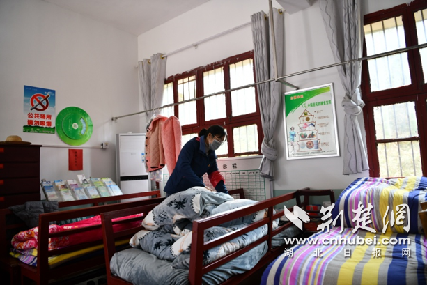 桃源村是一個有著6000多人的大村,為保證工作效率,徐搖選擇暫住在村里,沒想到一住就是十來天。簡陋的村衛(wèi)生輸液室是4個同伴的棲身之地,兩張長椅拼湊在一起,墊上帶過來的被子就是她的床。