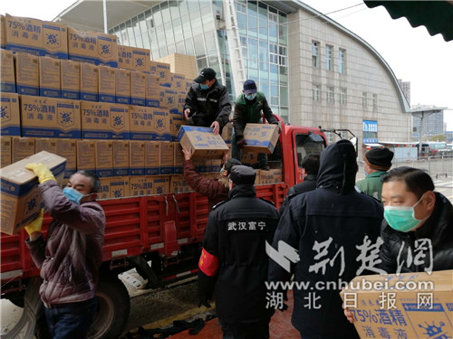 為保證高濃度醫用酒精卸載安全,16日8時,湖北省客集團組織10名工作人員,將捐贈的醫用酒精安全卸載存放。