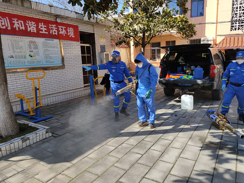 谷城藍(lán)天救援隊對駐谷部隊外部重點區(qū)域進(jìn)行消殺作業(yè)。通訊員供圖