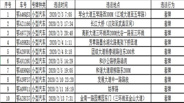 荊楚網客戶端—荊楚網消息(記者張揚 通訊員張鵬)2月21日,武漢市公安交管部門曝光疫情防控期間嚴重交通違法行為。警方表示:近期將不定期對違法車輛進行曝光,并呼吁廣大市民引以為戒,嚴格遵守道路交通安全法及疫情管控期間的各項規定,爭做文明武漢人。