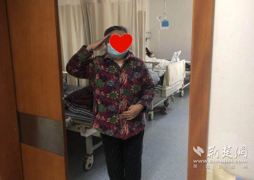 王阿姨向醫護人員敬了一個“軍禮”。通訊員供圖