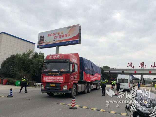 荊楚網客戶端—荊楚網消息(記者張揚、通訊員詹曉靜)2月23日上午,十一輛援漢物資運輸車緩緩駛出武漢鳳凰山收費站,由在此等候的武漢市東湖高新區交通大隊一路護送,順利抵達目的地。