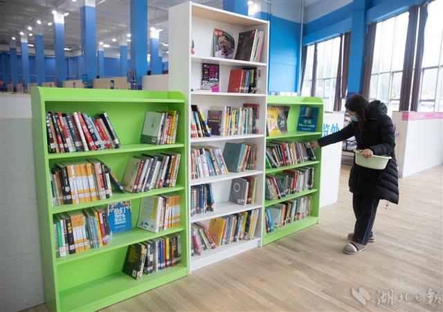 2月12日,武漢江岸塔子湖體育館方艙醫院,患者在挑選圖書。