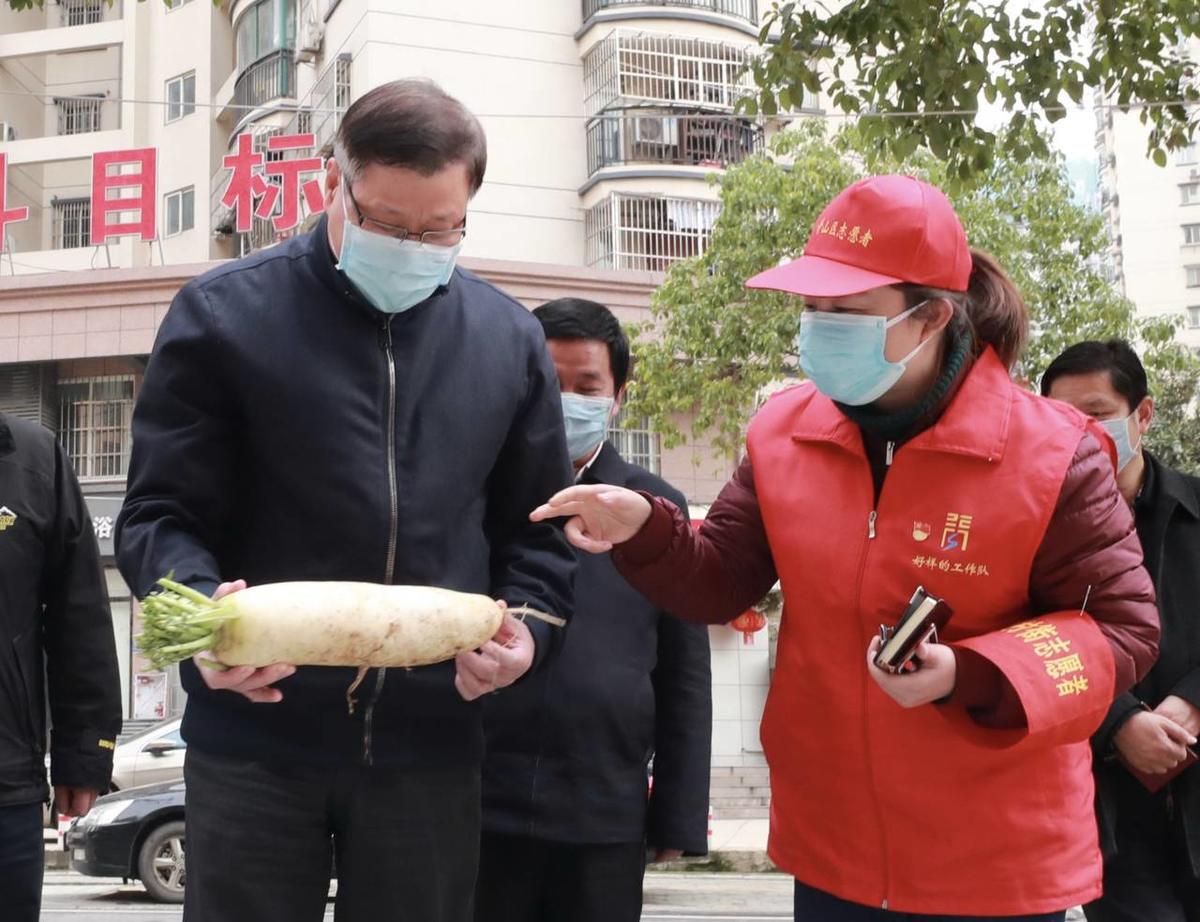 在小區封閉管理、公共區域管控的情況下,中商徐東平價廣場和周邊5個街道的2000多個小區對接,積極探索社區團購配送服務,單日配送高峰近2萬單。40多名志愿者正和商超員工一起,將菜品分揀打包裝上公交車,準備送往各個社區。應勇與志愿者親切交談,詳細了解志愿者人數、工作時間、服務情況,感謝他們的辛勤付出。隨后他走進賣場察看物資儲備和價格情況,要求國有商超企業切實履行社會責任,為城市生活供應發揮托底保障作用。