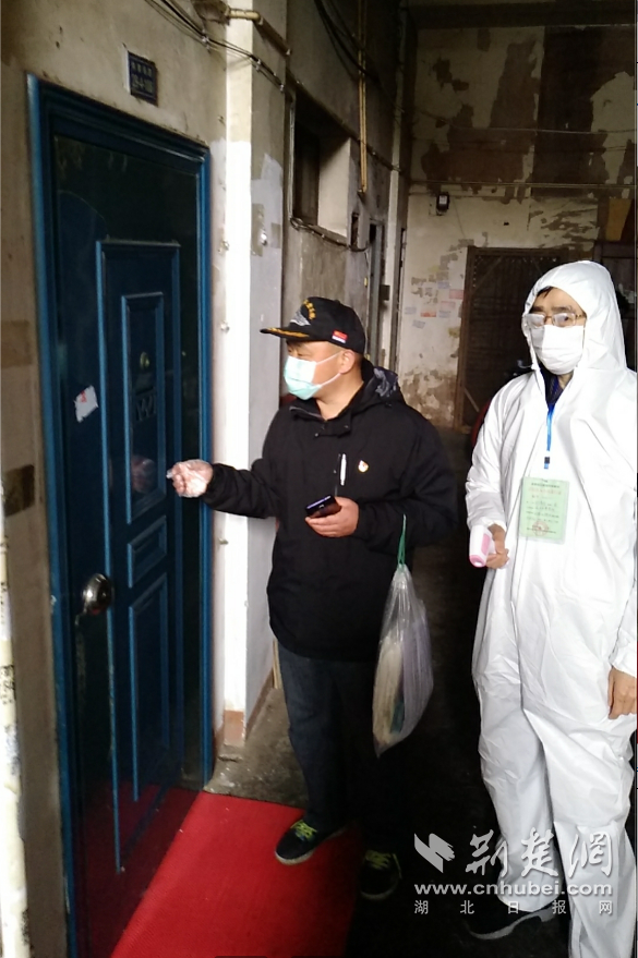 毛良民帶領小區戰“疫”工作隊隊員挨家挨戶上門測量體溫。通訊員供圖