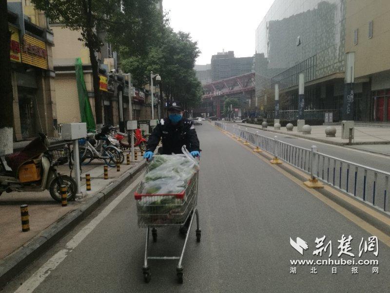 民警用小推車(chē)為居民送菜。通訊員供圖