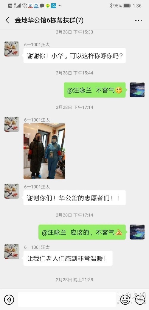 在下沉社區疫情防控一線期間,劉小華始終不忘自己黨員身份,不僅積極參加保障居民團購生活物資的志愿服務活動,墊資為成批的居民購菜,按戶發放,打造小區封閉管理下的居民“菜籃子”工程,更是主動承擔起7名獨居困難老人的幫扶工作,建立幫扶微信群,每天了解他們健康情況,定期幫他們購菜、買藥。面對居民和老人們的一聲又一聲“謝謝”,劉小華總說“應該的,我是黨員志愿者”。