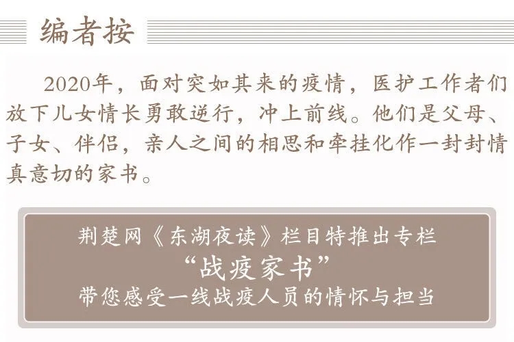 荊楚網(wǎng)《東湖夜讀·戰(zhàn)疫家書》欄目今晚跟您分享王文寫給妻子的這封家書。