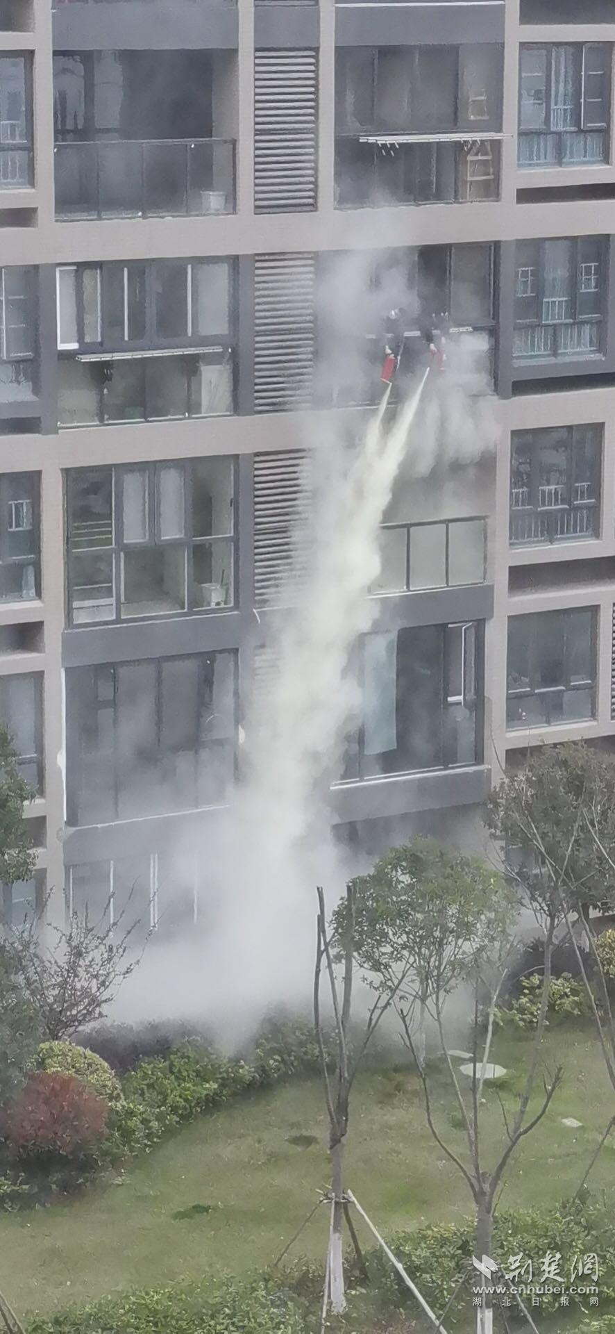 俞明哲咬緊牙關,手持滅火器,從上往下,對準三樓陽臺噴灑。