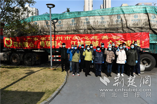 一輛滿載30噸新鮮愛心蔬菜的大卡車抵達湖北武漢。通訊員陳也平攝