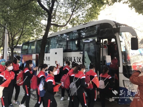 湖北省客集團第八運輸分公司安排18輛大巴車,歡送援漢醫護人員踏上凱旋旅途。上午10時,3輛大巴車第一批次運送定點支援江漢方艙醫院的海南援鄂醫療團隊100余人,從市委黨校駐地出發前往武漢天河機場。
