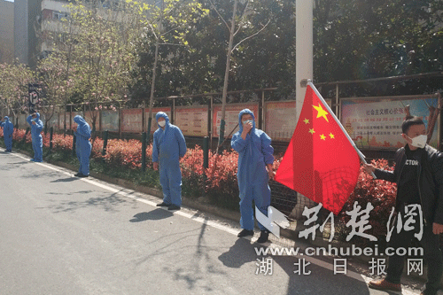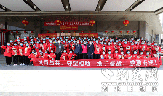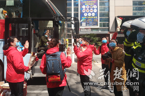 “武漢加油,中國必勝!”現(xiàn)場,即將踏上歸程的醫(yī)護人員齊聲吶喊。附近小區(qū)樓上的居民打開窗戶,對著車隊的方向揮手喊話:“白衣戰(zhàn)士辛苦了,武漢人民謝謝您們,一路平安!”醫(yī)療隊員停下腳步,比心回應(yīng)。濃濃的情誼,令人動容。