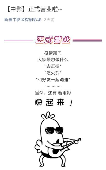 新疆中影金棕櫚影城近日開始營業