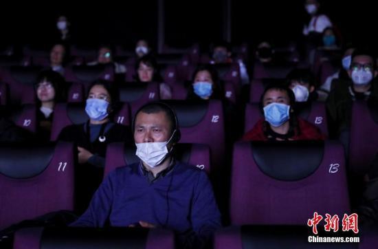 資料圖:1月23日,影迷在電影院內戴口罩觀影
