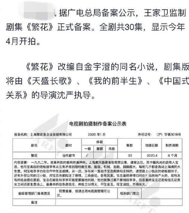 而與此前的備案公示(2020年4月拍攝)對比,該報道中所指應該是電視劇版的《繁花》,王家衛是監制,導演是沈嚴。而關于電影版,此前的新聞采訪描述為“一定會有”,至于何時啟動還未可知。