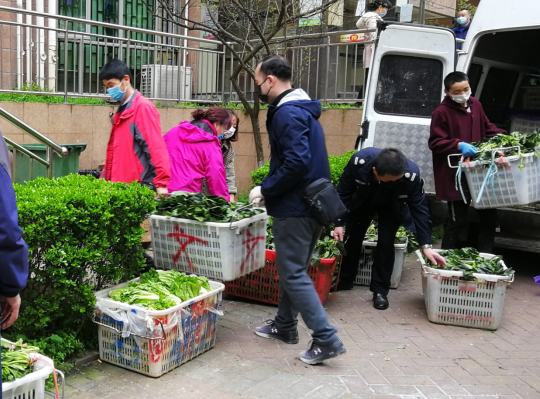 江漢區工作隊在下沉社區幫助送愛心蔬菜