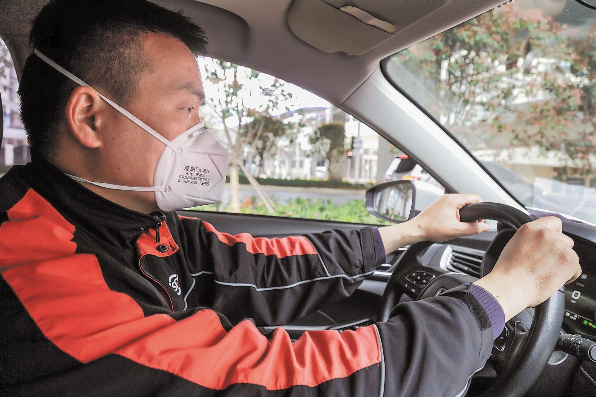 3月11日下午,汪勇義務開車為醫護人員運送物資。(圖片由受訪者提供)