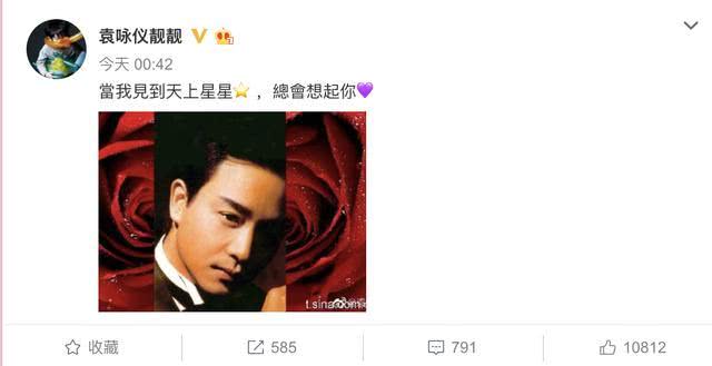 網易娛樂4月1日報道 4月1日凌晨,藝人袁詠儀更新動態,發文緬懷世人張國榮,配文道:當我見到天上星星,總會想起你。不論是張國榮還是梅艷芳,袁詠儀每年的忌日和冥壽都會為其發文慶生。