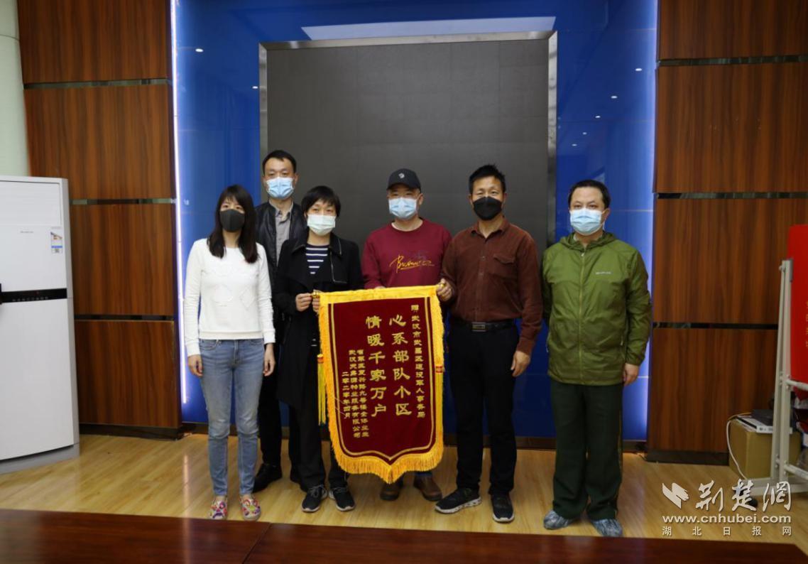 荊楚網客戶端—荊楚網消息(通訊員包曉霽)“感謝武昌區退役軍人事務局在疫情期間為我們小區送來的生活物資和防疫物資,解決了小區居民的燃眉之急,讓奮戰在抗疫一線的軍人無后顧之憂。”4月9日下午,湖北省軍區復興路九號樓小區的現役軍人、退役軍人及軍屬等代表5人,將繡有“心系部隊小區 情暖千家萬戶”的錦旗贈送給武昌區退役軍人事務局。