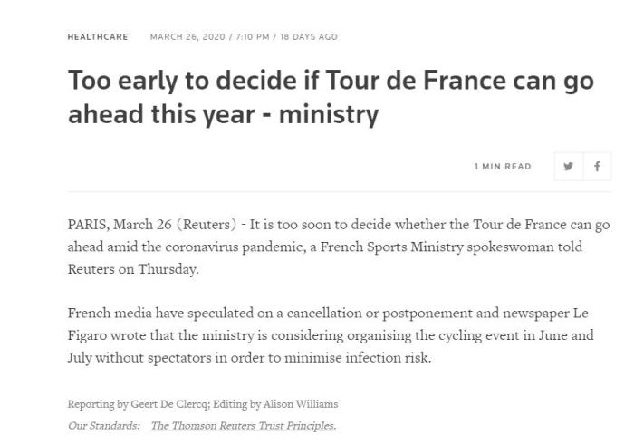 另據(jù)外媒報道,此前相關(guān)組織者已經(jīng)確認(rèn)今年的環(huán)瑞士自行車賽將取消。當(dāng)時,國際自行車聯(lián)盟世界巡回賽日歷上的下一項(xiàng)賽事是6月開始的環(huán)法自行車賽。