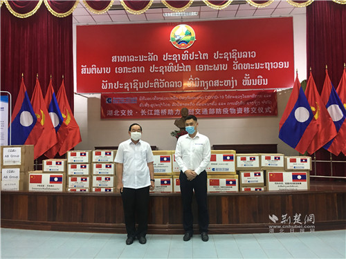 荊楚網客戶端—荊楚網消息(通訊員徐冬梅、石祎瑋)面對全球日益嚴峻的新冠肺炎疫情,中國企業秉承著人類命運共同體理念,積極參與國際抗疫合作。4月15日上午,湖北交投建設集團長江路橋公司老撾北項目部繼分享防控經驗、聯合老撾衛生廳開展防疫宣傳活動后再行動,向老撾交通部、衛生部捐贈了一批醫療防疫物資。老撾交通部部長本詹,老撾公路司司長里塔、項目經理拉薩米,老撾衛生部辦公廳主任佬柏拓以及長江路橋老撾北項目部項目經理王斌等出席交接儀式。