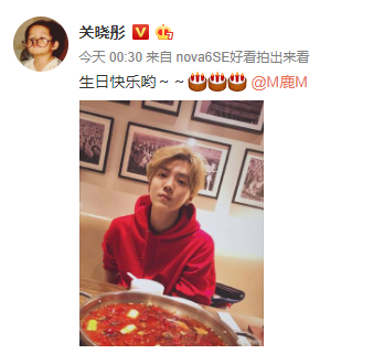 網易娛樂4月20日報道 4月20日是鹿晗的30歲生日,零點過后,鹿晗女友關曉彤在微博曬出鹿晗吃火鍋的照片,并配文“生日快樂喲”,為其甜蜜慶生。微博一出,粉絲紛紛評論道“三十而立,不勝歡欣, 愿你們處處美景,歲歲良辰,一鹿彤行”,“就知道你肯定會發”,“甜甜蜜蜜”。