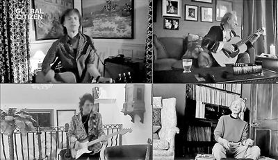 滾石樂(lè)隊(duì)成員們各自在家完成了這次隔空相聚,獻(xiàn)唱了他們1969年的經(jīng)典作品《You Can’t Always Get What You Want》。