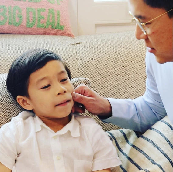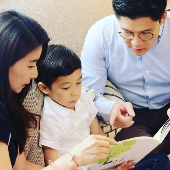 4月20日下午,霍啟剛在社交網站分享了與郭晶晶一起陪孩子閱讀的溫馨畫面。他們一家三口坐在沙發上,大兒子霍中曦坐在爸爸媽媽中間。霍啟剛正耐心為兒子講解,郭晶晶一身樸素打扮,狀態大好。