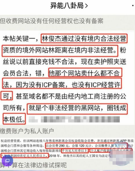 日前在網上,出現一篇標題為“林俊杰以個人帳戶收粉絲會員費億元以上是否違規經營“”的文章,質疑林俊杰的官方歌迷會林距離,疑似非法收取粉絲入會費、并販賣商品。該篇文章提出款項入私人帳戶及網站屬非法經營2大疑點,指出林俊杰的歌迷會存在違規情況。