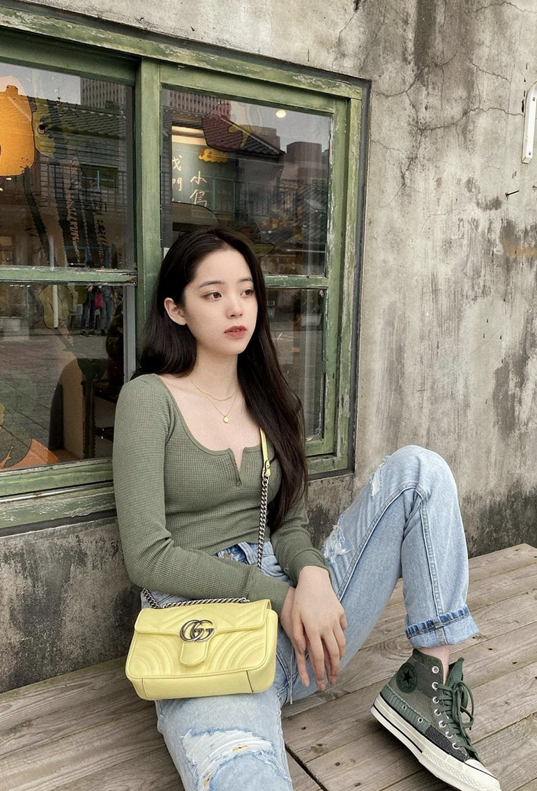 4月22日,歐陽娜娜一組春游照在曝光,它身穿緊身短上衣和牛仔褲,秀出纖細身材,背著嫩黃色的小包,頗具春天的氣息。