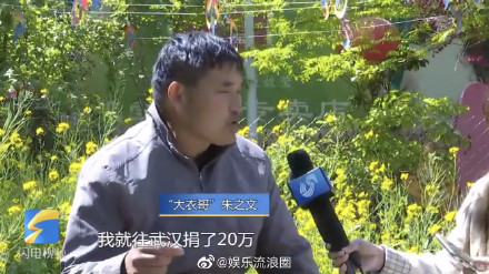大門被踹之后,4月22日上午十點,“大衣哥”朱之文接受閃電新聞專訪,回應各種質疑。直播中,朱之文表示自己在得知疫情之后,馬上向武漢捐款20萬,而在新聞里得知疫情形勢緊張、全國人民共同戰“疫”后,朱之文又向家鄉捐款20萬,“給大家買點口罩、消毒液。”