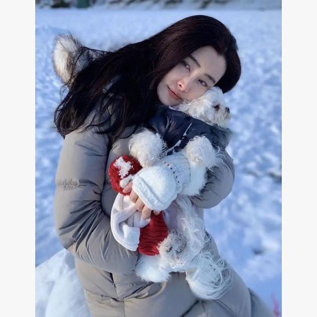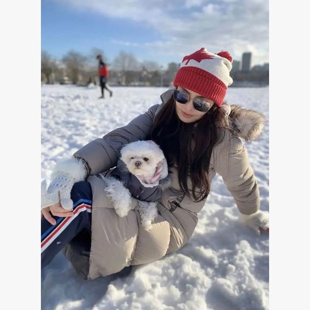 除了上網參加法會,王祖賢在防疫期間,還是保持著外出遛狗的習慣,她也曬出與愛犬“智悟”一同玩雪的日常照,她不畏低溫坐在雪地上與狗玩耍,不但把愛犬緊緊抱入懷中,王祖賢更“護犬心切”,把自己當成人肉坐墊,讓狗狗坐在她的身上,寵愛到家。而她摘下口罩的素顏嫩樣依舊美麗動人,一點也不見歲月痕跡。