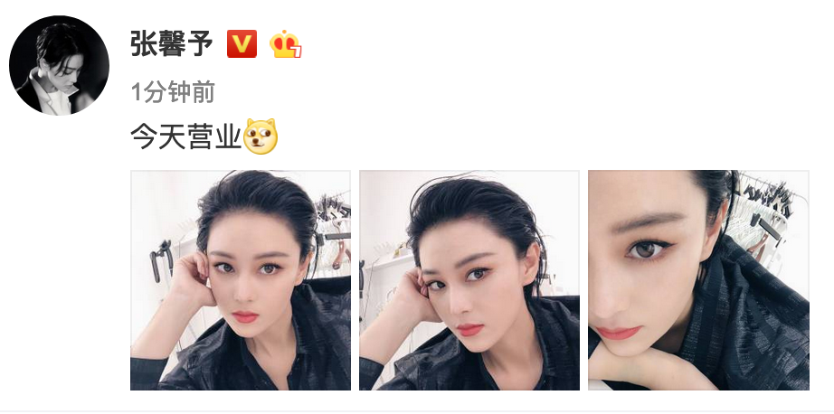 4月26日下午,張馨予分享三張自拍美照,并配文:“今天營(yíng)業(yè)”。照片中的張馨予梳著帥氣背頭造型,身穿黑色上衣,她畫著精致的上揚(yáng)眼線妝容,單手托臉,直視鏡頭,霸氣十足。