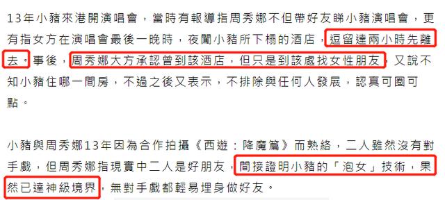 可以說小豬喜歡和各種女伴約會是實至名歸,甚至傳出周秀娜同小豬羅志祥兩人曾在酒店密會兩個小時。