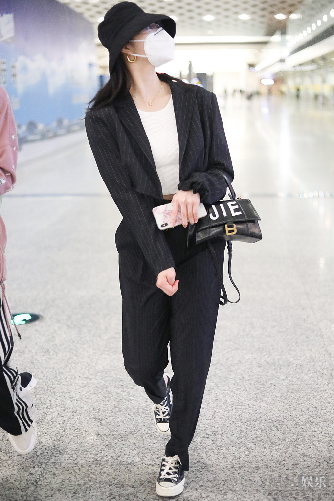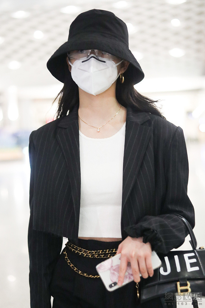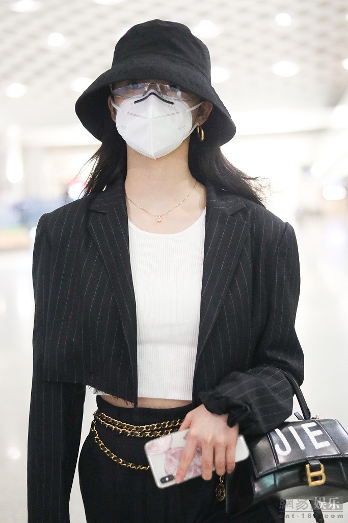 2020年4月27日,浙江杭州,周潔瓊現(xiàn)身機場。她穿超短小西裝亮相,秀出蠻腰颯爽范十足,拎包趕路東張西望秒變“好奇寶寶”。