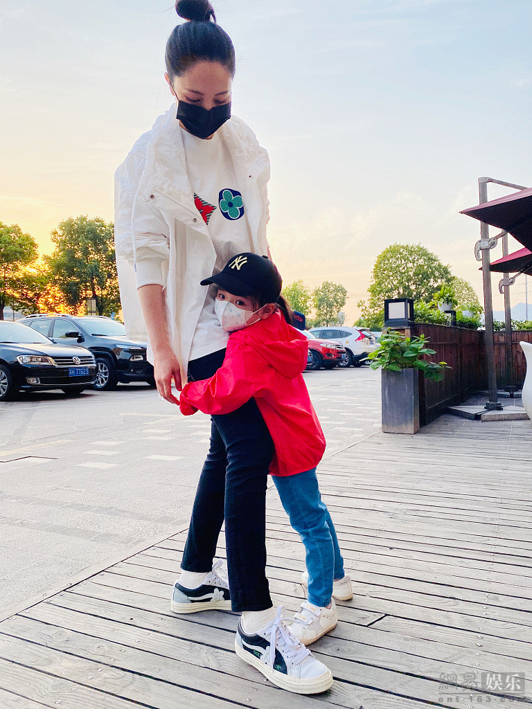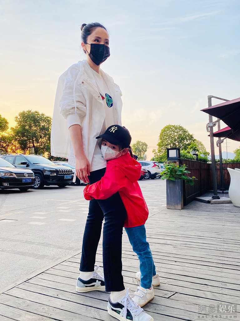 2020年4月27日,董璇和女兒小酒窩一起出街的照片曝光。照片里,小酒窩抱著媽媽董璇的大腿,大眼睛靈氣十足,乖巧黏人的模樣甜化人心,不愧是媽媽的小棉襖,又甜又暖。
