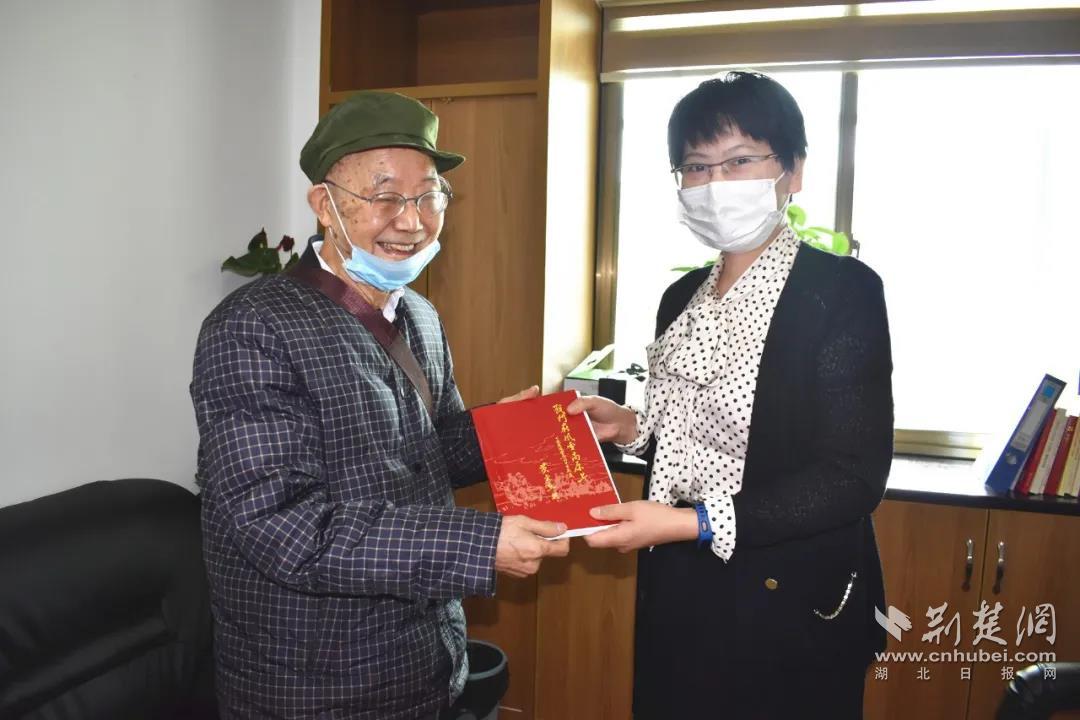 黃金立向恩施市退役軍人事務局贈送《戰斗在風雪高原上》。通訊員供圖
