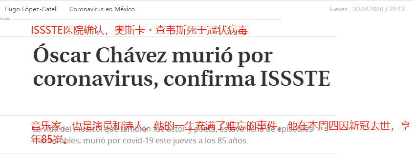 剛剛,墨西哥媒體表示,奧斯卡·查韋斯所在醫院確認他死于新冠。