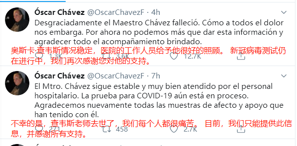 但遺憾的是,僅僅3個小時之后,工作人員就宣布了他的死訊:不幸的是,查韋斯老師去世了,我們每個人都很痛苦。 目前,我們只能提供此信息,并感謝所有支持。