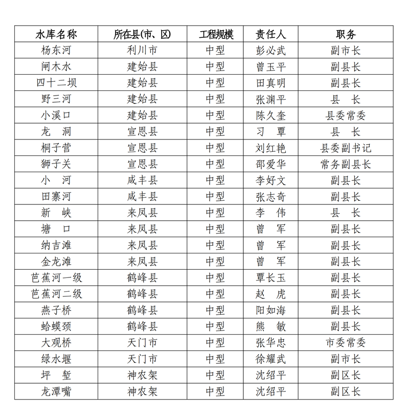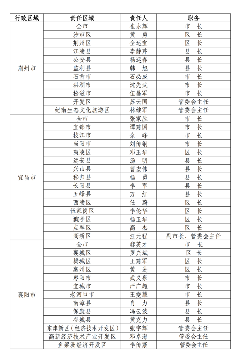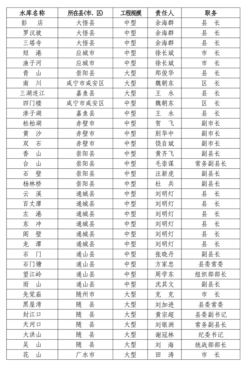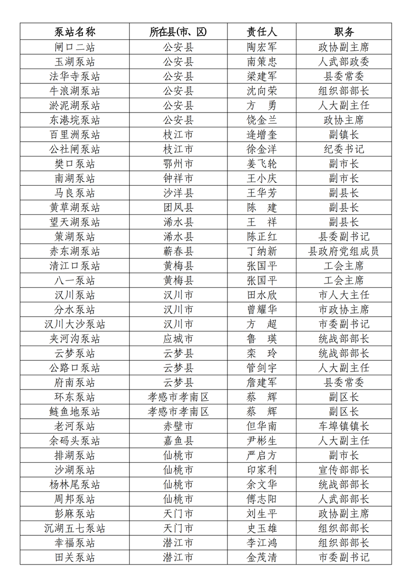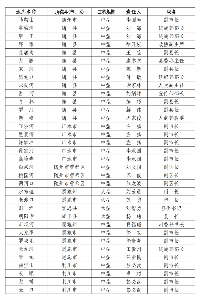 荊楚網客戶端-荊楚網消息(記者張城、通訊員周怡)5月3日,記者從湖北省防汛抗旱指揮部獲悉,為切實做好2020年防汛抗旱工作,根據《中華人民共和國防洪法》《中華人民共和國防汛條例》《中華人民共和國抗旱條例》關于防汛抗旱工作實行各級人民政府行政首長負責制的規定,省防汛抗旱指揮部于近日對外公布了全省防汛抗旱行政責任人,大江大河、大中型水庫、大型水閘、主要蓄滯洪區、大型排澇泵站、五大湖泊及重點防洪城市防汛行政責任人名單,并接受社會各界的監督。