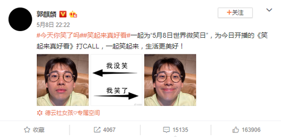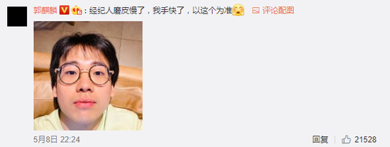 網(wǎng)易娛樂5月9日報(bào)道 5月8日晚,郭麒麟在微博曬出兩張未修過的自拍原圖,照片中他的痘印和胡渣清晰可見,相當(dāng)“原生態(tài)”。兩分鐘后,郭麒麟又在評論中曬出一張修圖后的自拍,寫道:“經(jīng)紀(jì)人磨皮慢了,我手快了,以這個(gè)為準(zhǔn)。”