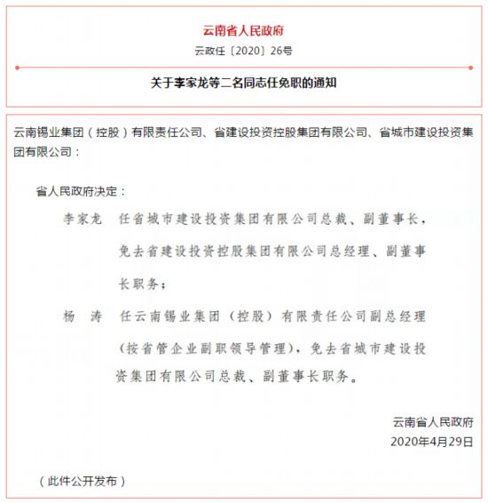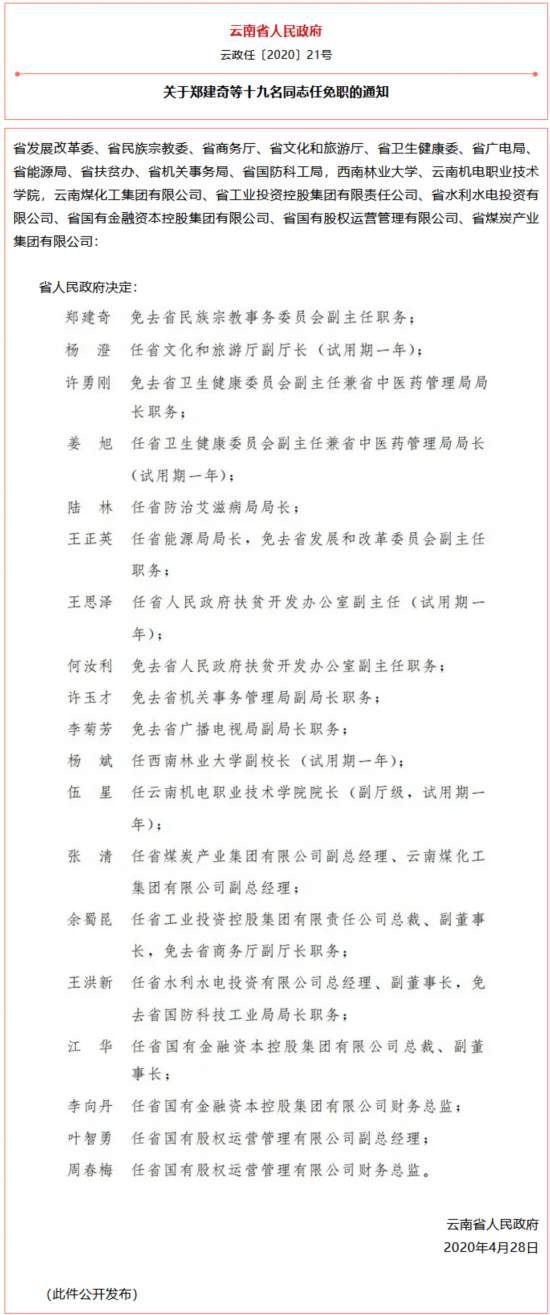 近日,云南省人民政府發布一批任免職通知,共涉及27名干部。具體通知如下: