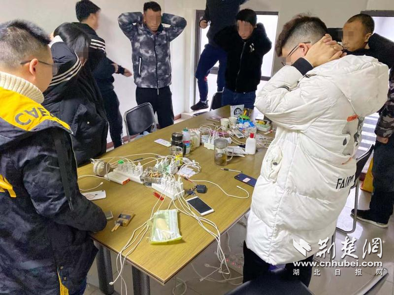 2010年1月10日,洪山區公安分局的十余名警力來到該公寓開展摸排,將目標鎖定在22樓的一戶出租屋。透過門上破損的貓眼,民警發現屋內有多人在活動,但敲門卻久久沒有回應。在業主的配合下,民警打開了房門,只見屋內被布置成辦公室,7名青年男女坐在辦公桌前,神色十分慌張。