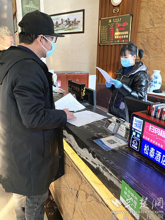 許思雨對疫情期間賓館上崗人員登記健康證。通訊員供圖