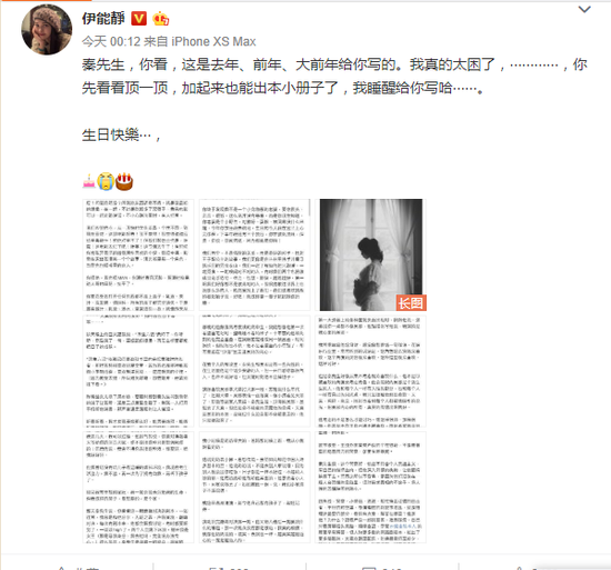 網(wǎng)易娛樂(lè)5月19日?qǐng)?bào)道 5月19日是秦昊的42歲生日。零點(diǎn)過(guò)后,老婆伊能靜發(fā)文為其慶生,并曬出了以前為老公寫(xiě)過(guò)的小作文合集。她寫(xiě)道:“秦先生,你看,這是去年、前年、大前年給你寫(xiě)的。我真的太困了,,你先看看頂一頂,加起來(lái)也能出本小冊(cè)子了,我睡醒給你寫(xiě)哈??生日快樂(lè)?”。