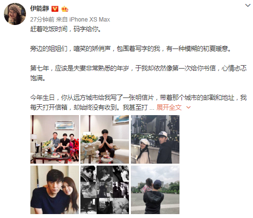 伊能靜在文章的最后大方表白老公:“許多人說,七年之癢,再怎么相愛的七年,都會消磨在婚姻的瑣碎里。但我想說,我是越來越了解你,越來越明白你古老的珍貴。七年,不癢。再14年也亦是伴侶。”