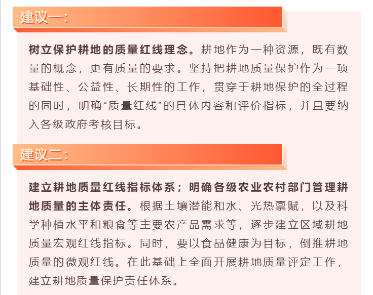 所以我今年帶來了關于設立耕地質量保護紅線的建議。