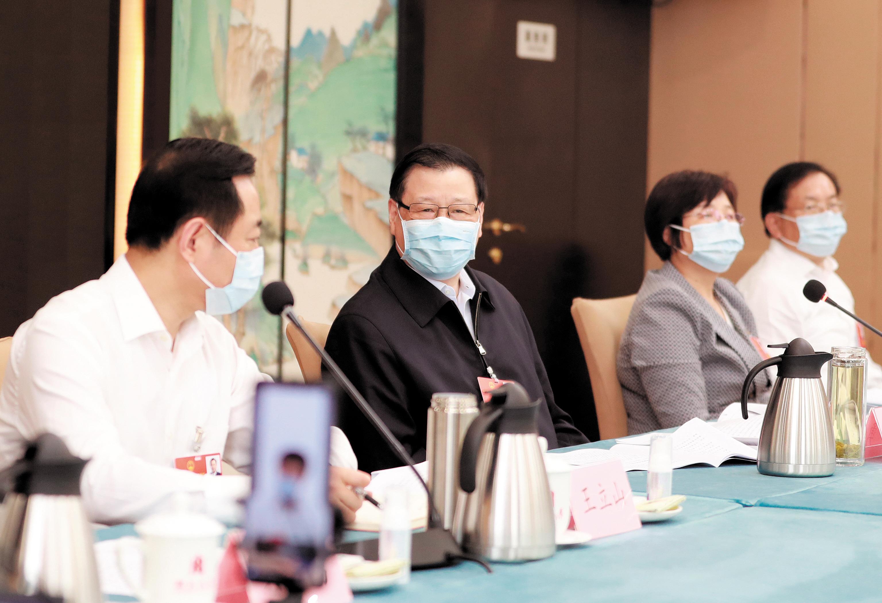 省委書記、代表團團長應勇,省委副書記、省長、代表團副團長王曉東,代表團副團長王玲、黃楚平、王立山、王忠林、周洪宇分別參加審議。國家發改委、財政部、國家衛健委、水利部、國家廣電總局、國家信訪局等有關部委負責同志通過視頻連線方式聽取審議、審查意見。