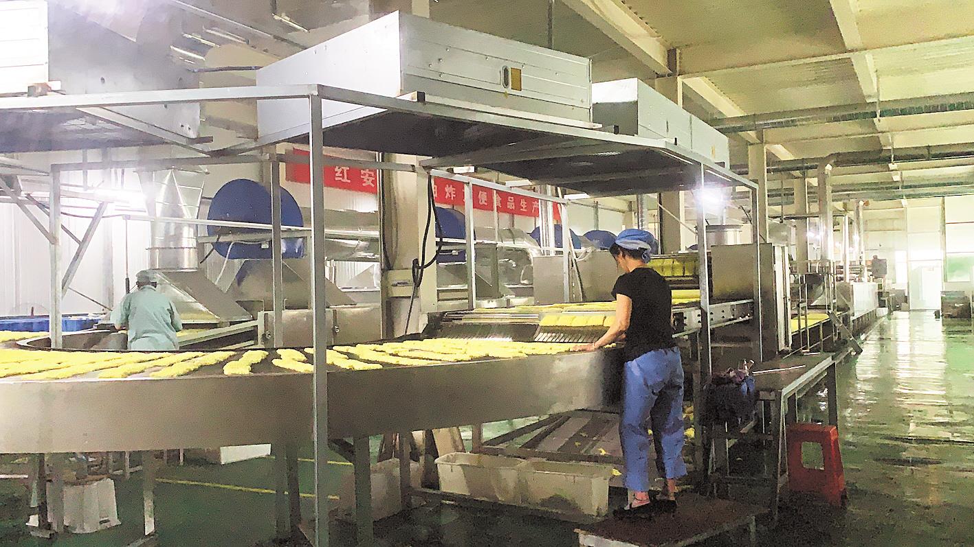 紅安阿帆食品股份有限公司生產車間里一派繁忙。(湖北日報全媒記者 張倩倩 攝)